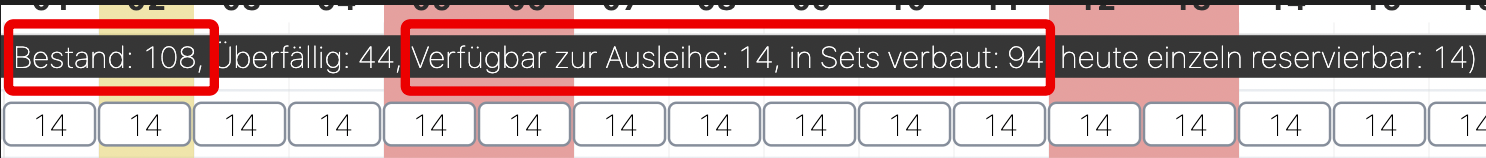 - Artikel bearbeiten Seite, Tab Artikeleinheiten: In der Spalte „geladen/entliehen“ werden ausschliesslich Einträge von aktuell geladenen/entliehenen/überfälligen Ausleihen angezeigt