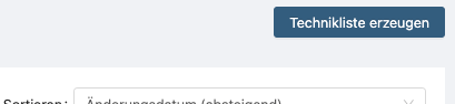 Der Button „Technikliste erzeugen“ öffnet einen Dialog.