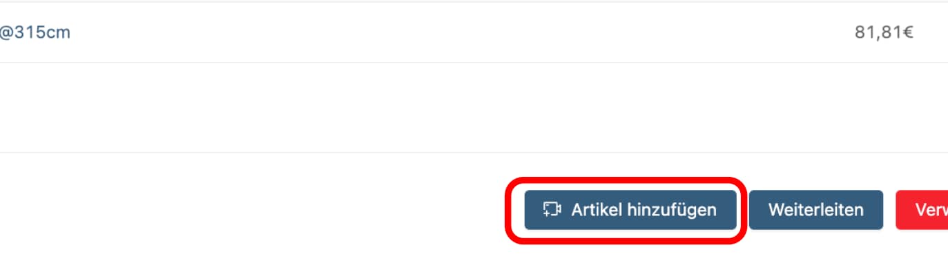 Der Button „Artikel hinzufügen“ führt zur Artikelauswahl des Techniklagers.