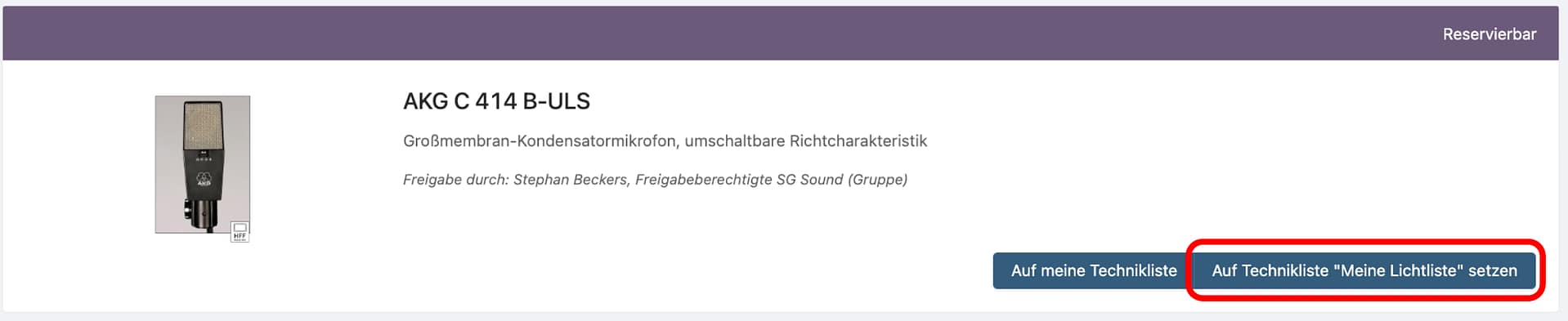 Der Button oben rechts führt zurück zur freizugebenden Technikliste.