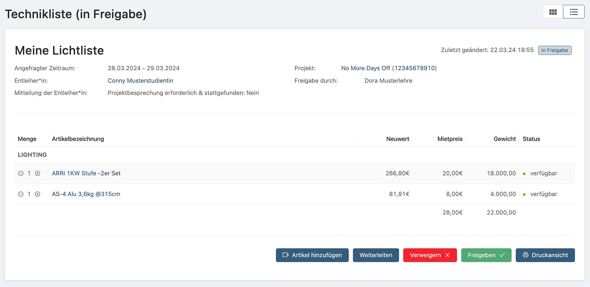 Mit diesem Update bringen wir lange erwartete Verbesserungen für Projektmanagement und Technikverleih heraus. Die Kommentarfunktion im Projektmanagement wurde grundlegend überarbeitet, während der Freigabe von Techniklisten können weitere Artikel hinzugefügt werden, nur um einige Beispiele zu nennen.