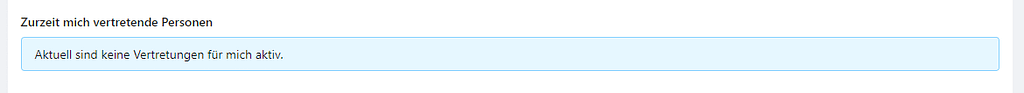 Welche Personen mich verteten wird übersichtlich im Profil unter „Zurzeit mich vertetende Personen“ angezeigt. Hier werden ebenfalls die Buttons angezeigt um eine Vertretung für meine Person zu beenden.