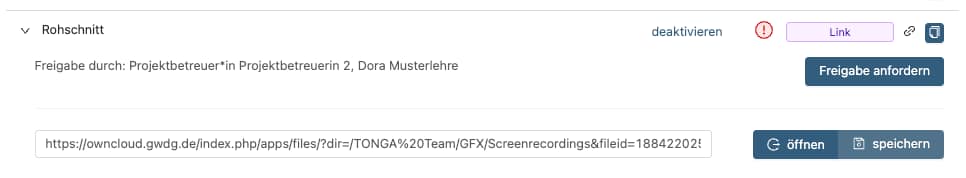 Im Projektmanagement können nun Links in einem besonderen Asset-Typ angegeben werden. So können etwa Schnittversionen verlinkt werden, oder es kann ein ganzes Cloud-Verzeichnis angegeben werden, in dem das Paket für ein Greenlighting liegt o.ä.