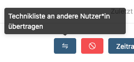 Lehrende können nun eigene Techniklisten zu anderen Nutzer*innen übertragen. Diese haben dann als Entleiher*in den Besitz an der Technikliste. Die ursprüngliche Besitzerin behält eine Kopie im Entwurfs-Status.