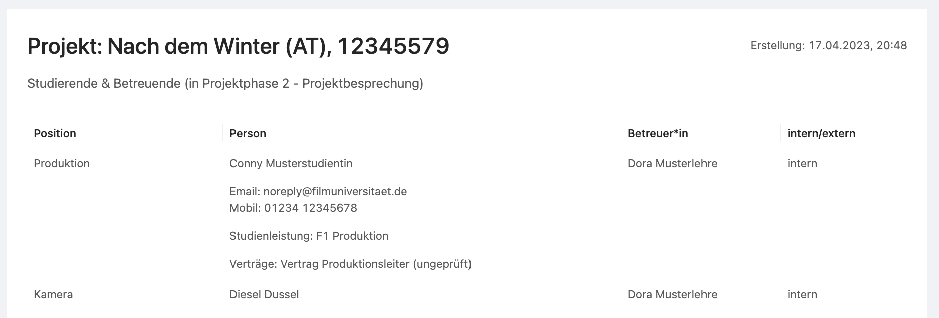 Die Personenliste (Stablisten, Studierende & Betreuende etc.) hat nun eine Druckansicht. Die Druckansicht zeigt alle Daten der Seite. Persönliche Daten wie Telefonnummern werden entsprechend den Profileinstellungen der Teilnehmer angezeigt.